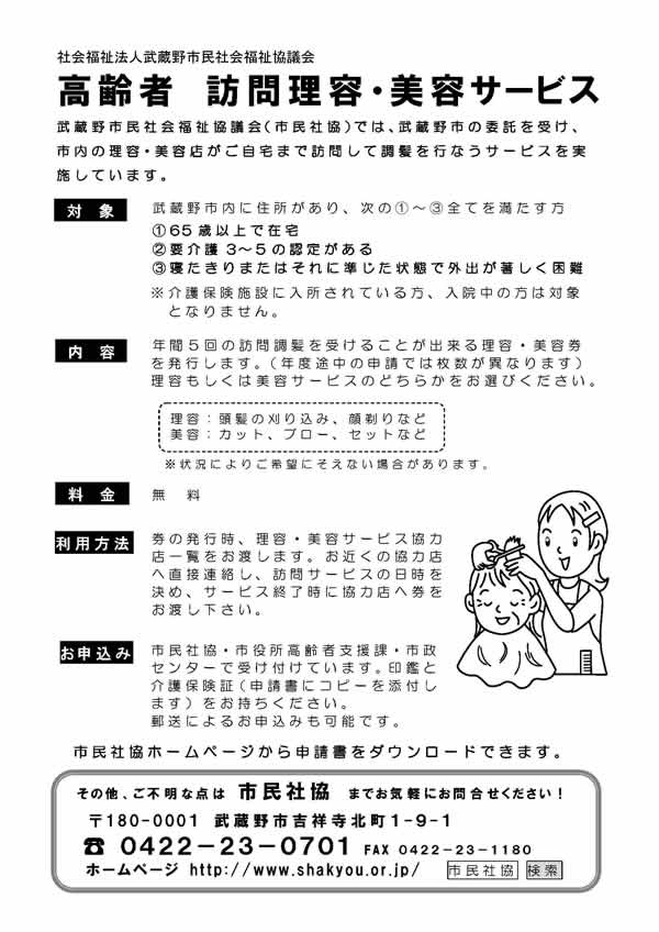 ( 武蔵野市社会福祉協議会発行の福祉調髪券が使えます)